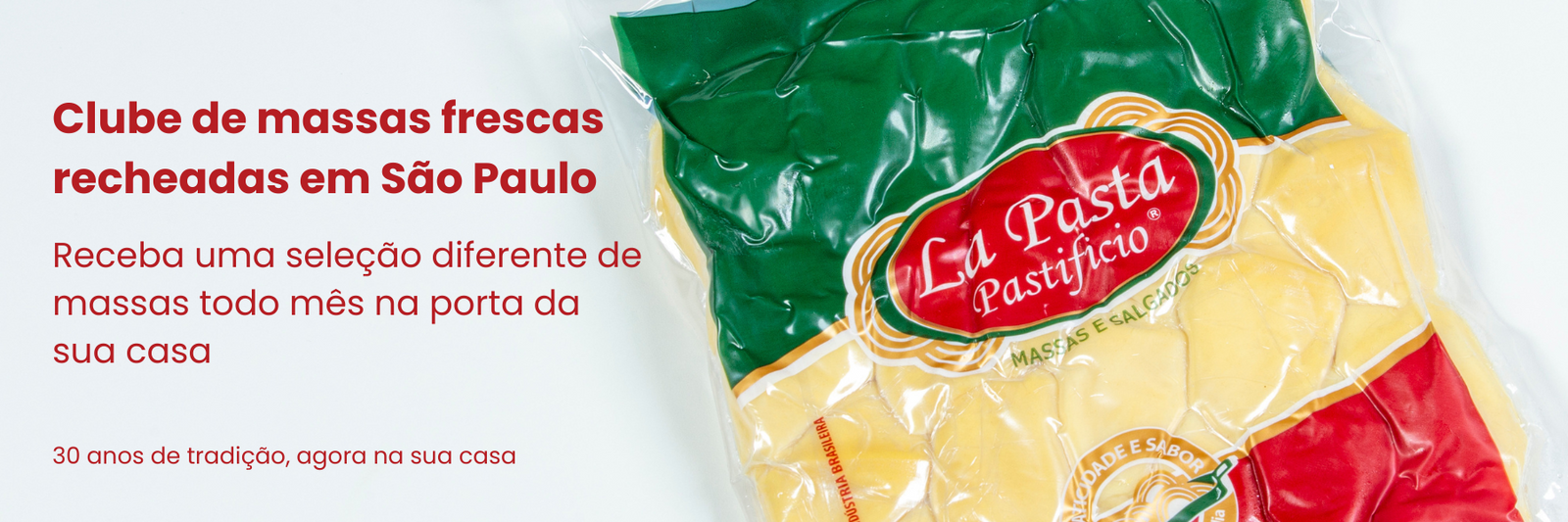 Seu primeiro pedido chega em até 32h. A cada mês, uma nova caixa especial de massas frescas.